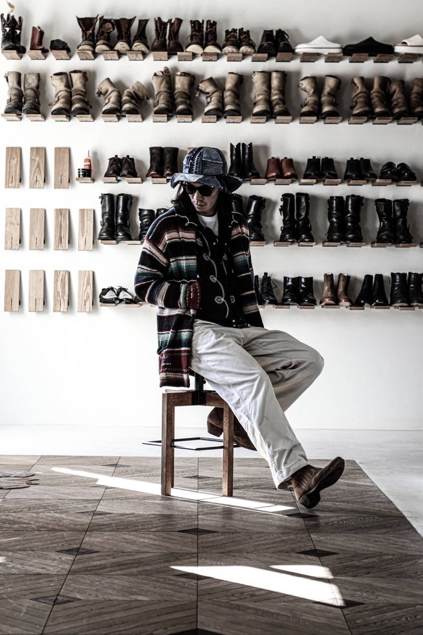 足元は、ウエスタンタイプのサイドゴアを使い、全体をスッキリさせたコーディネートです。